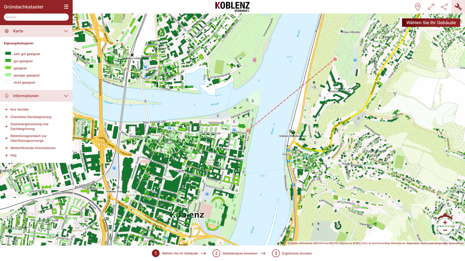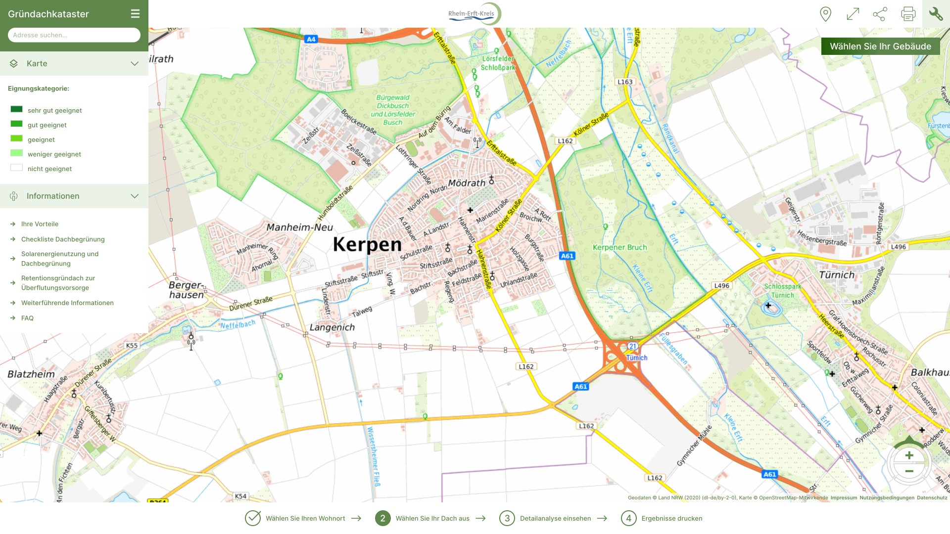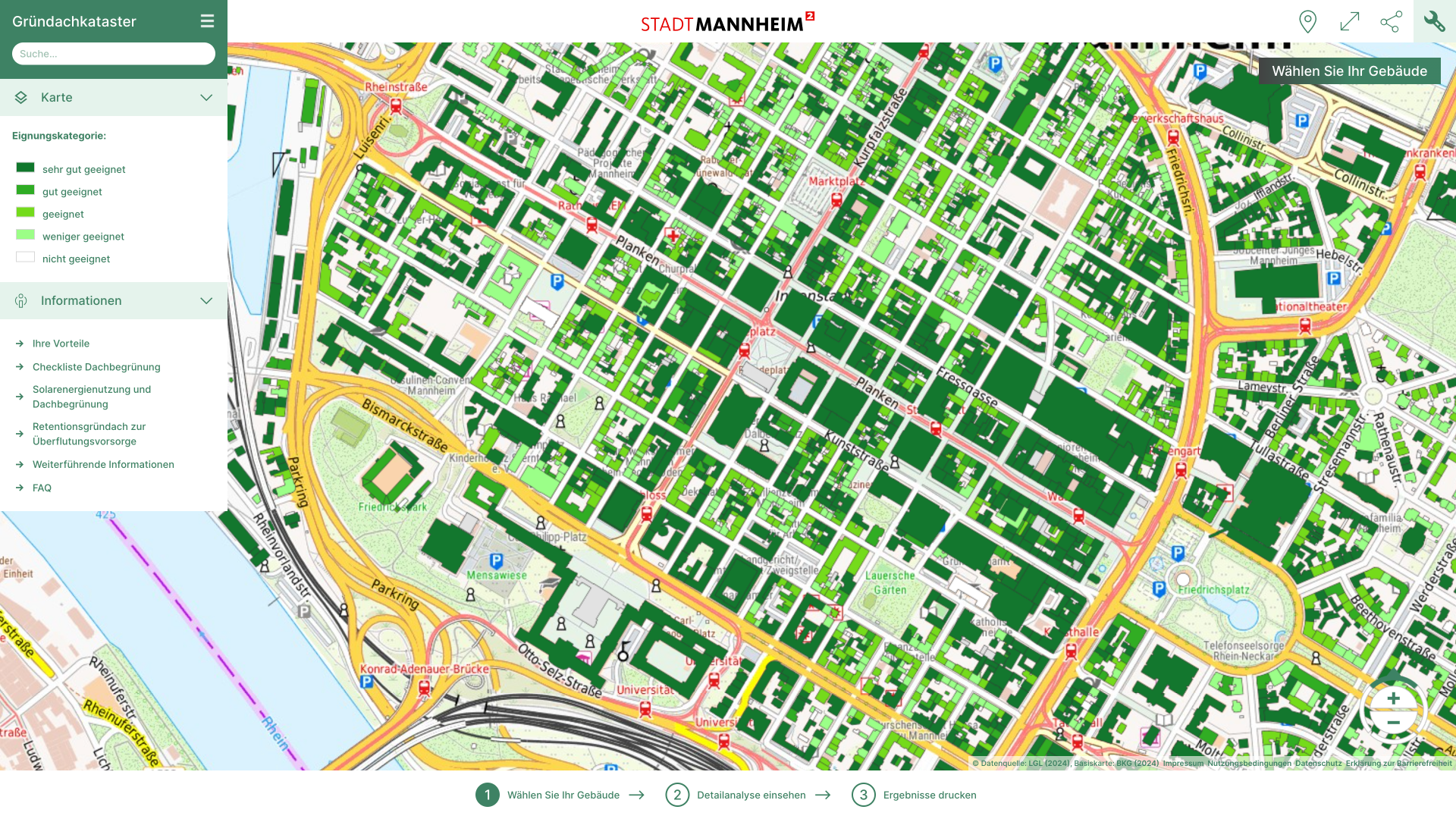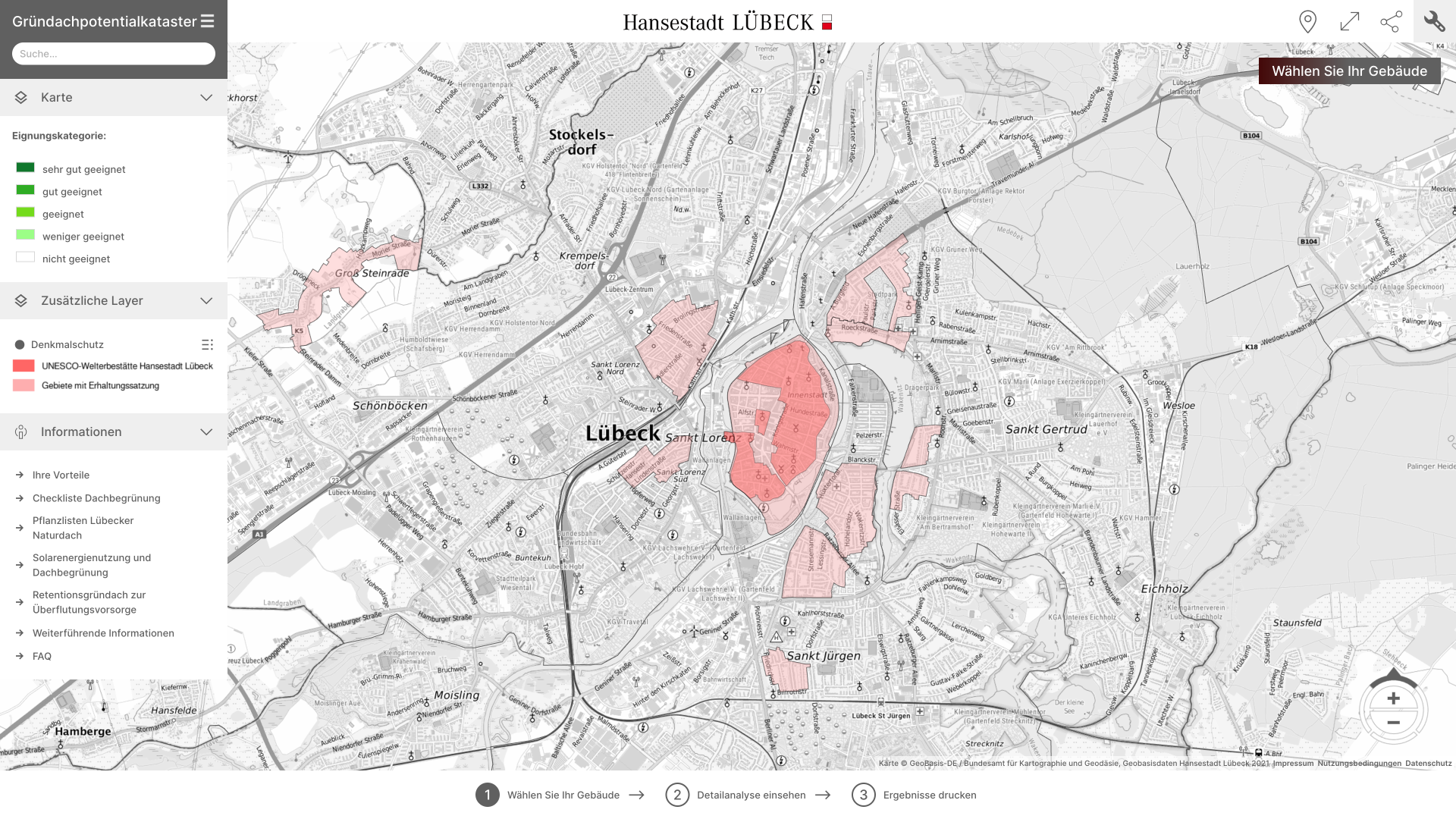 • Optional: Eine automatisierte Bestandsaufnahme der bereits bestehenden Gründächer ist möglich.